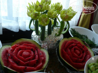 Ресторан и шведский стол это канечно что то!!! Дома воопервых такого изобилия и овощей в пазном виде и фруктов,только салатов видов 6 + на горячее тоже очень много всего даже не описать,кто поедет будет доволен,а хоэяйеи менч поймут когда дома два мужика и маленький ребенок,вот и попробуй всех прокарми,а там не надо об этом думать.Единственное что не очень понравилость так это завтрак для детей маленьких, не продумано толко сухие завтраки и молочная рисовая каша(как клестер)не растворить,была бы овсянка было бы норм.А так все супер.