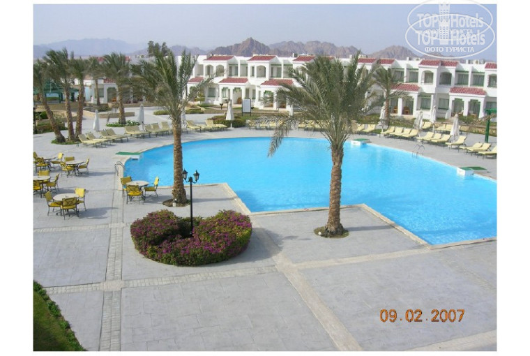 Всем привет отдыхал в этом отеле с 31.01.07 по 10.02.07 г. Летал компанией Sky Way, ну комнания вроде ниче (средняя). Приехал в отель, на ресепшене мне выдали ключик от номера 315 (на удивление) все писали что дадут там 6 или 7 корпуса, но нет мне повезло. Потом общаясь с ребятами из России убедился что мне просто повезло многим достались корпуса из разряда 5,6,7. Что могу сказать про номер - номер милый не очень большой но уютный. Кондиционер работает только на холод, так что ночью было прохладно))). Если бы ни кондей, то было бы вообще супер. У меня был вид на море, только он мне оказался совершенно не нужен, решайте сами. Если захотите переместиться в Сьют то придется заплатить по 30$ за день, меньше никак уламывал 2 дня. Что касается пляжа и территории. Территория большая, зеленая (много кактусав толстых и колючих), пальмы, кусты и цветы, короче красиво. Пляж не очень большой, но свой лежачок найти сможете, там есть пара класных мест но они с утра уже заняты)). На территории 3 бассейна (без подогрева!!!) и 1 джакузи. 1 бассейн у моря там тусит молодеж и вся движуха там!! Аниматоры музыка все там!! Второй у ресторана возле ресепшн. Джакузи возле фитнез зала (фитнес и сауна там бесплатные(сауна по записи)). Отелю 6 лет он еще молодой так что вид у него очень цивильный. Огромный респект Аниматорам (Шериф, Коля, Ахмед). Если захотите потусить обращайтесь к Шерифу он знает о тусах все. Что касаетса еды, безумно вкусные торты и булочки. Фруктов мало (я покупал все в старом городе 1кг клубники-1$, кг мандаринов - 3 фунта) мне фруктов хватало :))). Насчет всего остального судить могу только по себе ( а мне все понравилось) если человек привиредливый может многое не понравиться. Напитки на Ужин платные вода 1,5л - 8фунтов, чай,кола и тд. 9 фунтов. В старом городе 0,33 кола стоит 2 мах 2,5 фунта. 1,5л. - 5 фунтов. Расплачиваться советую на ресепшен за ресторан и кафе раз в 3-5 дней. (бумажки сохраняйте).