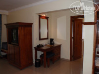 у нас был сьют хотя брали просто стандарт, не чего не доплачивали, и не расстраивайтесь если при заселении увидите, что вилла далеко от океана... это же хорошо!!! у нас была 33 вообще в стороне, и не чуть не пожалели, через вас ни кто не ползает, до ресепшина рукой подать, бассейн рядом, а вида на океан нет даже у ближних вилл, пальмы закрывают весь обзор... номер очень понравился, все есть и утюг и доска, и телик с первым каналом, фен, холодильник-он же бар, пополняется каждый день, ОН БЕСПЛАТНЫЙ, теперь вот привыкаем дома, к холодильнику, пиво почему то не появляется?!?!))) кофеварка и кофе, чай, тока сахар в главном ресторане берите, кондиционер работал отлично, джакузи ванной тоже... и сейф тоже БЕСПЛАТНЫЙ в номере, уборка в номере ежедневно, чаевые что ложишь, что не ложишь, порой без чаевых ещё лучше приберется)))