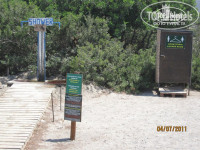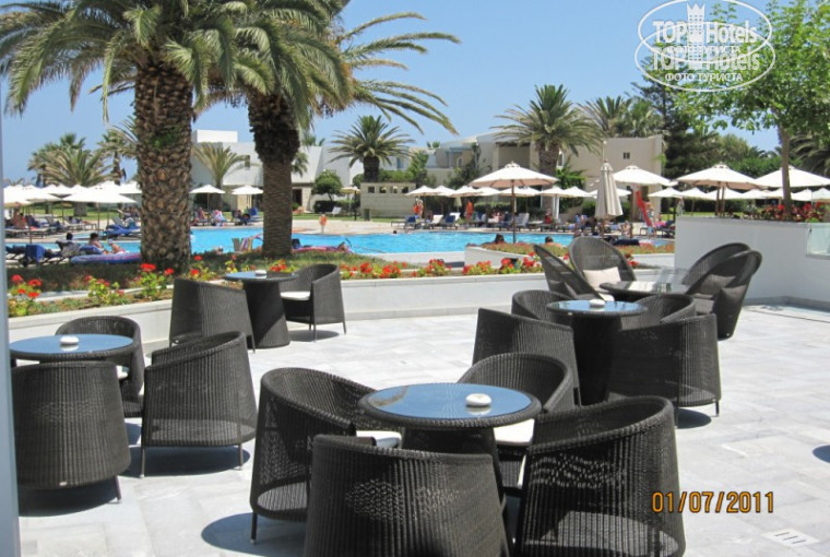 По приезду, вещи взял на себя носильщик, а мы пошли на ресепшн. Там вообще есть 3 русскоговорящих сотрудника (они это все называют отделом по связям с общественностью), но мы начали оформляться с гречанкой... После оформления, в номер нас повела уже русская сотрудница. Первое, что она сказала и что лично меня не-то-чтобы-расстроило это её предупреждение, что на ужин нельзя ходить в шортах...ни в каких. "Пять звёзд" говорит, "так принято", "высокий статус" и т.п. При этом в спортивных штанах, джинсах с оттянутым задом, коленками, дырками на пол ноги - можно, что и делает некоторая (по-правде сказать небольшая) часть отеля. На обед и завтрак - хоть в плавках, если совесть позволяет. Пока она вела нас в номер (мы брали Супериор Фэмили Бунгало), в двух словах рассказала о том что есть в гостинице. Ни я, ни моя жена ничего из того, что она рассказала, не поняли. Кроме места где можно взять пляжные полотенца. Потом мы случайно познакомились с ещё одной русской девочкой (с хвостиком) - очень доступно все рассказала, все показала и вообще хочу потом написать ей какую-нибудь благодарность.