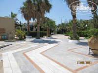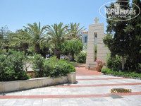 Заходим в номер. Первые впечатления - душно (можно было проветрить), специфический запах (-"-), стильно и вроде чисто...На ванной при включении света обнаруживается разлитой какая-то сладость или чё-то липкое вообщем. Ну думаем ладно, не успели может ванную прибрать. Номер надо сказать бывалый, уже слегка поизношеный (у нас 536-й, это первый этаж) и точно, не соответствует пафосным словам проводившего нас до номера сотрудника о "5-тизвездочности". Киевские 5 звезд и Критские - это разные вещи: здесь берут количеством услуг, у нас - качеством, в том числе и качеством отделки номера. Есть небольшая терасса с выходом в сад, там стоит качелька, стулья стол и два шезлонга с зонтом. Очень прикольно в обед здесь поваляться.