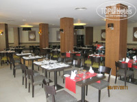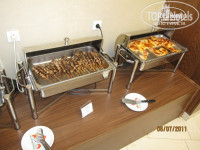 Готов рассказать еще несколько особенностей отеля Крета Палас. В ресторане «Лабиринт» (где проходят завтраки и ужины) есть летняя площадка, окруженная фонтанчиками. Особенность в том, что если Вы не пришли утром до 9, а вечером к началу ужина, попасть туда сможете только постояв в очереди из 7-10 человек, томно ожидающих, когда же освободится столик… Не хотите? Можно всегда спокойно найти столик в помещении самого ресторана, за который Вас проведет «специально обученный человек», уточнив при этом «на сколько именно персон нужен Вам столик». На улице сидеть приятней…но не в нашей компании, а когда Вы вдвоём.