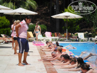 Весь день работают аниматоры.И зарядку прведут и аквааэробику.Можно поиграть в дартс,волейбол на пляже,настольный теннис.Всегда играет музыка.Пока идёшь по территории,всегда поинтересуются как тебе отдыхается.А как относятся к деткам!И на руки возьмут и пообщаются.От девочек аниматоров ребятишки не отходят.Они весёлые и замечательные!Огромное спасибо Тубе,Айде и Ляйсан!И взрослая анимация отличная.За 10 дней ни разу номера не повторялись!