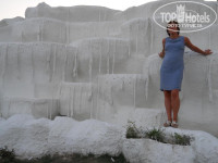 Пляж: до пляжа идти 5-7 минут, необходимо перейти 2 дороги. Дорога к пляжу идет мимо рынка, на котором можно приобрести фрукты (черешня 4-5$? клубника - 2$) и другие необходимые товары (тапочки, круги и прочее). Сам пляж маленький, узкий, галечный (!!!). Шезлонги новые, хватало всем. Под зонтиками мелкая галька, а ближе к морю галька крупнее. Море чистой, купающихся много, недалеко от берега плавают рыбки (кусаются:), так как с пирса их подкармливают хлебом). На пляже есть платный туалет(1$), душ и раздевалка. Собственного бара нет, но бармен с соседнего отеля предлагает напитки и еду. На пляже есть собственный "секьюрити", который следит за порядком на пляже и не пускает чужых на наши лежаки. Работает хорошо, не говорит по-русски. На ресепшене выдаются пляжные полотенца бесплатно и меняются раз в три дня.