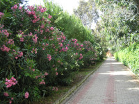 Отель выбрали по соотношению цена-качество. Когда ехали туда, то думали, что не будем обращать внимание на недостатки отеля, будем проводить больше времени на пляже и на экскурсиях. Но отель оказался гораздо больше, чем мы ожидали и представляли по фотографиям. Действительно, 25000 м2. На фотографиях туристов, в основном, центр отеля, где находятся 2 бассейна. А самая красивая зеленая спокойная территория находится за корпусами. Всего в отеле 4 больших корпуса. Многие даже не подозревают, что можно пройти сквозь чужие корпуса и оказаться, например, на детской площадке, или в тренажерном зале, или в уютном дворике, где бабушка печет лепешки. При плотно заполненном отеле (1200 человек), там всегда пусто!!! Народ, в основном, у бассейнов на самой жаре. А все вышеперечисленные места находятся в тени и утопают в зелени. Нас порадовали красивые деревья и цветы: высокие пальмы, апельсиновые и лимоновые деревья, ипомея, бархатцы, ромашки, розы, даже клены, сосны, гранаты и много неизвестных нам ползучих растений, которые настолько необычно цвели , что мы всякий раз останавливались, фотографировали, любовались и восторгались яркими нотками их ароматов. Тренажерный зал, конечно, не рассчитан на качков. Это совсем не типичный тренажерный зал. Без всяких тяжелых «блинчиков». Зато со многими из них справиться даже ребенок. Там каждый из нашей семьи нашел для себя по паре-тройке любимых тренажеров. Главное, что они чистенькие, аккуратненькие, новые, не скрепят и легкие в использовании. С утра пораньше, пока море было еще прохладное, самое то было на них поразминаться.
