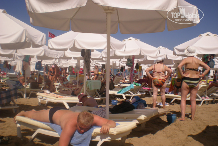 По поводу еды – разнообразно и вкусно, фрукты: арбуз, дыня, апельсины, яблоки, грейпфруты, продаются клубника, черешня и т.д. Пляж (в 5 минутах ходьбы) и море замечательные, но из-за большого наличия народу, лежаки надо было занимать в 7 утра!, тоже самое около бассейна.