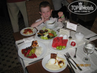 В ресторане очень большой выбор блюд, на любой вкус. Из фруктов нам давали: арбузы, дыни, грейпфруты, апельсины, сливы, алычу. Конечно плохо что в этот раз не давали черешню и персики, но я их покупала. Цены черешня от 3 до 6 $, персики, абрикосы 4$. Бывают небольшие очереди за горячим, но это бывает во всех отелях. Готовят прекрасно и разнообразно, уж поверьте мне.