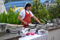 Питание супер. Из фруктов- персики,апельсины,яблоки,алыча,грейпфруты,арбузы,дыни)Много разных сладостей,рыба на гриле(стейки семги,форель),вкуснейшие жаренные и тушенные овощи,салатики,супчики.Голодным никто не останется