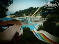 Всё понравилось, море отличное, только иногда приплывает мусор(большой мертвый краб приплыл вместе с мусором), вместо пляжа понтон у которого очень много рыб прикормлено если кинуть им батон то съедят за 30 сек.(берите маски,трубки,очки есть на что посмотреть в это место постоянно привозят дайверов), медузу встретил только одну с одной стороны глубоко метра 4, с другой по пояс(на фото) дно большие камни, в бесплатный аквапарк лучше ходить с 16.00 до 17.00 когда увозят туристов горки все безопасные сам проверял есть только одна опасность если за вами кто-то поедет, есть дикий пляж в 20 минутах ходьбы, по дороге в темноте будьте аккуратны ползают змеи, кормят хорошо много фруктов,мороженое, разное мясо и рыба. В одном километре есть большой рынок Алара Гранд Базар в конце рынка есть хороший супермаркет там самые лучшие цены на всё, в начале тура когда ехали в отель гид сказал что у них теперь своя фабрика сладостей и на обратном пути нас туда завезут, мы зашли на обратном пути, так вот банка орехов в меду из супермаркета за сто руб. там стоила ровно 400 руб. Анимация есть у бассейна, а вечером шутки ниже пояса. На охране работает мужик хорошо говорит по русски любит пообщаться. Жили в бунгало 6103 вид хороший, только ооооооочень шумно ночью до 5 утра от дискотек из аквапрарка и отелей напротив(в основном корпусе говорят не слышно). Ездили втроём от Анекс тур с Питера за 64 т.р.Всё можно посмотреть сверху в гугл планета земля.Видео на Ютуб по поиску Water Planet Aquapark & Holiday Village HV-1.