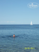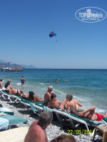 Море в это время еще прохладное, но к концу отдыха потеплело. Пляж чистый, вода чистая из-за того что галька. Непременно нужны купальные тапочки, для комфорта при вхождении в воду. Необязательно брать толстые полотенца для пляжа это лишний груз.Можно хлопчатобумажное парео или льняное большое полотенце. Желательно сразу не ложиться на лежак после купания в море, а немного обсохнуть, т.к. пропитанное морской солью полотенце становится жестким и плохо сохнет, да и тяжелым. Можно конечно на пляже под душем смыть соль, но мы смывали в гостинице, так полезнее думаю. Чтобы не сгореть сразу мы два-три дня лежали только под тентами на последних рядах от моря. Затем постепенно под зонтом, заняв места справа и слева, т.к. солнце всходит с моря со стороны порта, а заходит за отелями позади пляжа как-бы. Получается одно место всегда на солнце, одно в тени. И в последние дни, не боясь сгореть, просто рай лежать рядом с морем, вдыхая морской воздух и чувствуя прохладу с моря с брызгами.