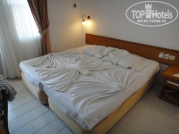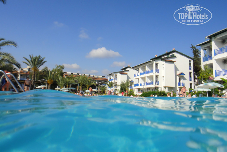 Отдыхать мы ездили втроем, нам всем до 25 лет. Я с парнем в Турции были в первый раз, друг в шестой. В отель мы приехали в обед, ехали из аэропорта около 2х часов. Пообедали, потом пошли размещаться, мы на ресепшине дали на 2 номера 20 баксов в паспорте - поселили нормально и рядом. Дали номера у самого моря, правда окна на другой корпус. Вообще корпуса стоят так, что вида на море просто не предусмотрено)) У нас в номере не работал телевизор и шумел кондиционер, у друга все было окей. Можно было попросить чтобы все сделали, но мы решили не заморачиваться. Номера простые: кровати, тумбочки, полки, стол с зеркалом, балкон, на балконе столик и стулья. В ванной душ, раковина, туалет - все простое, но приличное. Пошли на море... и я тут же разбила нос (по собственной же глупости) дно там каменистое, но вполне приемлимое, кроме того есть понтон, с которого можно нырять. Мы заходили с берега - если море тихое вода просто прозрачная - очень красиво.