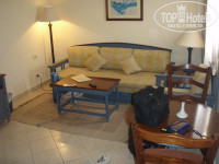 Посещали отель с 6 по 13 марта. Деньги на ресепшене все еще вымогают, причем довольно настойчиво. Мы также настойчиво и твердо, из принципа, отказались платить их неизвестно за что. Поселили нас в самом начале зданий, сразу за рестораном; соответственно наши окна и балкон выходили в аккурат на кухню ресторана, естественно, что на этот самый балкон мы так ни разу и не вышли, ибо не за чем. Более того и окна наши были постоянно занавешены плотной ночной белой шторой дабы не смущать души туристов и арабов тем, что могло за ними происходить... Думаю, если бы мы заплатили эту 20-ку за более удачно расположенный номер, возможно, пару вечеров и покурили бы кальян на балконе. Но так как мы относимся к туристам, которые предпочитают отдых в стиле Экшен, балкон наш пустовал, да и бассейн, собственно, оставался абсолютно невостребованным, благо хватало там любителей шезлонгов и без нас. Вернемся к номеру (специально выложила фотки в разных ракурсах). Номер нам понравился: просторный, функциональный, спальня с двумя двуспальными кроватями (на фото нет зеркального шкафа-купе и трюмо), гостиная со встроенной кухней (брали завтрак-ужин, пару раз днем жарили яичницу), мебель конечно не модерн, но не скажу, что и старье полное.