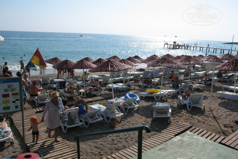 Вот расскажу как нас заселяли, только на перед скажу что нам это даже понравилось. В общем привезли на удивление нас не в Holiday Garden а в Holiday Park. Причем рассказали о том что в Гардене нет мест и переночуем мы в Парке. Ну думаем ладно, пообедали и на ресепшен, тут нас начали крутить, хотите номер по хуже или по лучше, намекая на взятку. Я сказал что по лучше но денег не дал, поселили действительно в большом и просторном номере с видом на море, отель свежий, телики ЖК тоненькие, поселились и умаем что отлично, может и останемся, походило по территории пока не вышли на пляж – вот это ужас, точно как у нас на черном море, узкая линия, мало лежаков и ледяное море – жуть. Прошлись на пляж Гарден, там несколько по лучше. Нашли вечером гида, сказали перевозите нас, он нас уговаривал остаться, типа отель новый и номер хороший, предложил одеть два браслета и посещать территорию Гардена. Господа, не введитесь, если в такую ситуацию попали, меняйте и требуйте то что положено, все брехня. В общем на следующий день нас перевезли чему мы были очень рады. Побывали мы в двух отелях, этому тоже были рады, разные ощущения. Вот скажу в Гардене как не говорят но питание лучше, море лучше, бассейн лучше и на много. Хоть и говорят что продукты как и хозяин отелей одинаковые но готовят в Гардене лучше а на море ходить через 2 отеля, все таки приехали на первую линию нафиг нужно. Потом видели на пляже людей с двумя браслетами, бедненькие ходили на пляж, повелись на уговоры.