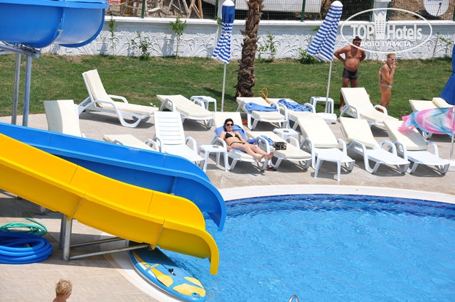 3. Отель. Красивый холл, все новое, что приятно. Хорошая сауна, есть тренажеры, интернет кафе на момент нашего приезда не открыли ещё. Бассейн хороший, есть две горки. Лежаки всегда находили свободные.