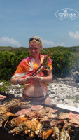 Питание классический шведский стол с большим разнообразием, каждый день было что-то новое. Приятно удивили фреши на завтрак (ананас, банан, папайя, арбуз, дыня) и всегда свежие и очень вкусные фрукты (в россии я больше манго покупать не стану, оно просто не сравнится с настоящим :) Колбасы, сыры (был даже с плесенью) порадовали, вкусные, не то, что в африке (хоть я особо их и не ем). Всегда при тебе что-то готовят: амлеты, гриль, пасту, десерты... Вечером настоящее шоу в ресторане: ездят мальчики со столиками и предлагают продегустировать разный алкоголь (тут же красиво делают коктейли... поджигают...тушат...прикольно), делают десерт специально для тебя (фрукты, сладости заливают шоколадом, украшают джемами кремами снова поджигают абсентом... очень красиво! На территории несколько ресторанов по предварительной записи по меню. Мы сходили в 3 (в морском ели лобстеров, в китайский с традиционной кухней и японский там готовят при тебе и можешь даже поучаствовать). В барах удивило разнообразие действительно вкусных и интересных коктейлей (не банально ром-кола:) и есть шампанское! Много еды в стиле макдональдс прям на пляже.
