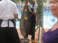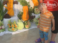 ПИТАНИЕ: Я вот читаю отзывы и удивляюсь, от куда люди едут, или они питаются в ресторанах аля фас-фуд? Питание было отличное: у меня желудок всегда реагирует на смену питания, всегда на отдыхе один день мучаюсь, но не в этот раз. Для детей набрали столько всяких средств от несварения, но ттт, обошлось. Фруктов был очень большой выбор: арбузы, апельсины, сливы, абрикосы, персики, нектарины, черешня, клубника, дыня (не очень). На завтрак очень приличная выпечка (булочки, круасаны, и т.п.), хлопьев несколько видов, с кашами конечно не очень, неумеют наверное варить, ну да ладно, обходились и без них, дети ели яишницу да блинчики с джемом. Соки пакетированные, очень даже неплохие, детям очень нравился персиковый и яблочный, а так 6 видов. На обед приличные супчики, ребенок у меня ел за милую душу. Огромный выбор салатов и всевозможных закусок, но вакусками не увлекались. :) Гарниров много, выбор мясных блюд очень богатый: говядина, баранина, курица, индюшатина, рыба. Очень сыну нравились нагетсы и рыбные палочки. Про ужин вообще молчу, там что то с чем то, мы просто выкатывались и так каждый день. В баре на ресепшене есть таматный сок, под конец отдыха, очень хорошо шел!!!:)