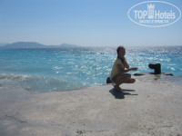 2)Пляж чистый и вход в море хороший(только море было холодным,но зато бодрячком после завтрака были).Лежаки платные 3 euro за лежак.Но после обеда никто деньги уже не берет)
