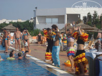 всем привет!прилетели сегодня ночью.отдыхали с подругой и детьми (12,16,16 лет),ездили на 2 нед.по горящим путевкам.в день приезда были очень разочарованы морем,а точнее огромным кол-вом водорослей на берегу и на море у берега.правда их убирали каждый день и поэтому их было то больше,то меньше...мы любим активно плавать и нырять,там это невозможно-т.к.мелко (((так что тем,для кого важнее всего чистое и глубокое море-там делать нечего.что касается самого отеля и заселения,то лично нам повезло,денег никому не давали, номер попался с видом на море и бассейн.так что прилетев в 5ч.утра к 10ч.заселились,хотя народа было много и нам сказали,что заселение будет после 12ч.переживала,покормят ли нас завтраком-покормили.здесь всё включено,как только ты входишь в отель и как только выходишь,садясь в автобус в аэропорт.так вот-номер просторный,чистый,кондей,сейф телек,холодильник,телефон-всё работало))но как выяснилось позднее,не у всех всё это работало и нужно было оставлять заявку гиду,после чего ремонтировали.бельё и полотенца поменяли нам раз в нед,думаю-это нормально.сам отель на хорошую"3"что касается еды-всего очень много и вкусно,каждый день на ужин на мангале готовили рыбу,мясо,птицу или печень.правда, помню кому-то из русских еда не понравилась,якобы в турции в 3 раза больше!!не знаю-куда БОЛЬШЕ:)))из напитков пили розовое вино,вполне нормальное.коктейли и пиво тоже вполне)))да кстати,рекомендую взять таблетки от расстройства желудка,нас всех 5-х это коснулось ;-))думаю это из-за их воды,она у них другая...что касается экскурсий,рекомендую сахару(170 дол.сша на чел.)на 2 дня,но это стоит того!!!отличный зоопарк и экскурсия в хамамед.на пиратском корабле не рекомендую,все,кто ездили-не понравилось.теперь о главном,здесь СУПЕР аниматоры!!!на уровне 5-ти звёздн.отеля,которые занимаются и с детьми и со взрослыми до поздней ночи!а какие они шоу каждый вечер показывали,мы до сих пор в шоке!!!!!так что взвесив все за и против мы пришли к выводу,что всё хорошо быть не может,всегда есть свои плюсы и минусы!так что мы отдохнули отлично,чего и вам желаем:-)))