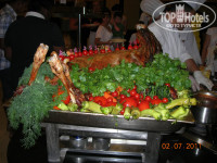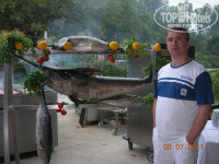 ПИТАНИЕ: СУПЕР!!! 1 день - барбекю меню, второй день - рыбный, третий - море баранины, четвертый - куча шашлыков и гуляшей всяких. ФРУКТЫ: от черешни до арбузов - все спелое и супер качество. Мороженое - объешься в течение дня. Последние два дня были раки, был два раза язык шикарный.