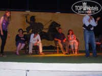 Анимация не блещет.На самом деле их 2 - одна для итальянцев - у них свой оранж клуб, вторая для всех.Ничего сверх нового-по вечерам мини диско в 9 для детворы,мисс отель и тп., ... потом диско.Но все до 23.00. Потом весилили сами себя - песни...(рядом лобби до2х).Пару раз были греческие вечера и всякие факиры...К сожалению этого почти не видели-укладывали малого спать и не жалеем.