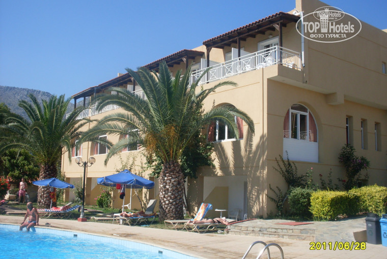 Хороший отель для тихого семейного отдыха. Мы отдыхали 3 недели в июне-июле этого года. Номер ( 503) с видом на море, убирали каждый день кроме пятниц. Белье меняли 6 раз за 21 день.Столовая не большая. иногда надо подождать пока столик освободится.... Питание: завтрак- хлопья. молоко,сыр, колбаса, омлет, сосиски, яйца, каша пару раз в неделю( манная и рисовая), овощи. консервированые персики. сметана. хлеб, 2 вида бисквита. джемы. мед. шокол. паста. чай. кофе и соки. Обед: 1 вид супа, пару салатов, куча овощей, оливки, 2 вида рыбы. 2 вида мяса, макароны. рис. картофель и т.п. Арбуз и апельсины, желе. Ужин: похож на обед по разнообразию, но блюда другие, повторяются только свежие овощи и фрукты.Десерт: халва. бисквит апельсиновый или др. местные сладости. Голодными не останетесь.Между приемами пищи в баре выкладывают бутерброды и бисквиты. детям- мороженое. Отель маленький. море в 50 метрах. чистый пляж,песок, вход в море хороший. лежаки 6 евро (2 шт и зонт) , для Тез Тура_ бесплатно. Бассейн один с одной стороны мелкий , с другой метра 3 в глубину.Есть детская площадка( горка, качели и сетка-лабиринт). Поселок Бали маленький, много сувенирных лавок. порт, куча контор по прокату машин( мы брали на 2 дня), .