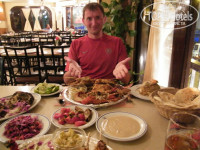 Еда. Это моя третья поездка за границу… Мой молодой человек, могу сказать одно: ОЧЕНЬ большая привереда в еде… Угодить трудно! Но там он был сыт всегда! На завтрак: яичница, омлет в которые можно добавить по желанию: помидорки, огурчики, какую-то сосиску. Яйца вареные, мюсли к которым были всякие сиропы и йогурт. Блинчики, а к ним шоколадная и еще какая-то начинка. Обед. Мясо: курица, говядина, наивкуснейшая рыба, какие-то шпикачки, овощи, салаты… Были супа, пару раз ела, и не разу не отравилась! =) Всевозможное количество булочек, хлебушков и т.д. К еде у нас вопросов не возникло, за исключение малого количества фруктов предлагаемых отелем. Были – дыни, апельсины и финики… Вроде все. Зато сколько было кондитерских изысков!!! И тортики, и пироженки, и желе, и сливки… Сладкоежкам там было чем поживиться! Чуть не забыла сказать о брынзе!!! Она там просто пальчики оближешь!!! Объеденье! Я себе даже потом в Питер в маркете коробочку купила… =) Хочется еще написать, про то что в главной столовой продавали арбузы… Четверть арбуза – стоит 2 доллара. В городе 1кг. стоит 2,5 фунта. Выгода очевидна. Арбуз из города, спокойно пронесли в номер и жадно съели.. вкуснятина.