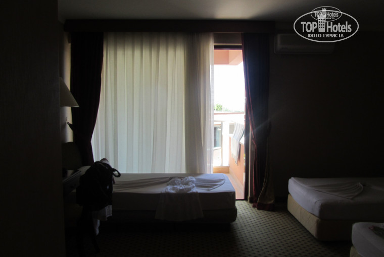 Номер достался с видом на соседний отель.Не так уж плохо.Некоторым подавай номера с видом на море, не понимаю таких людей, вы едите в Турцию для того что бы глазеть на море с балкончика?