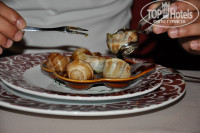 Вечером можно посетить рестораны, только надо днем ранее заказать его по телефону по электронной системе бронирования, стоит эта радость 10 евро с человека, были во всех ресторанах, японском, французском , европейском, турецком, во французском заказывали улиток, очень вкусно… Рыбный ресторан как уже писалось ранее действительно находится в кольце с виллами у бассейнов, но опять таки не все так страшно, мы там каждый день завтракали, и особого раздражающего шума, стучания ложек и тарелок я не заметила, видимо в наш заезд была культурная и тихая публика )).