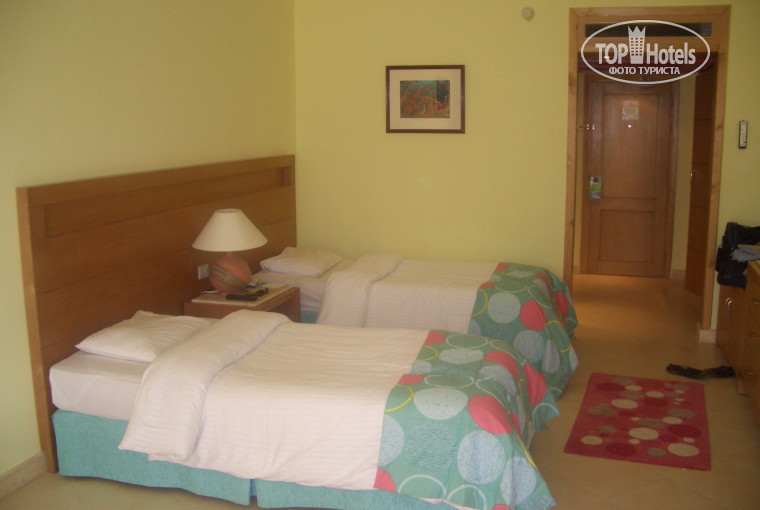 Номер получили быстро, он был на первом этаже во втором корпусе. На первом этаже номера больше из-за отсутствия балкона. Номер оказался хорошим, в нем был телевизор, минибар (две 1,5 л. бутылки минеральной воды и по бутылке спрайта и колы, обновлялся каждый день и был бесплатным) ,шкаф с тумбой , стол с чайником(кофе, сахар, чай, сливки ежедневно пополнялись ) в Египте был уже много раз даже и не помню сколько, так что за номер поставил бы 4+ .