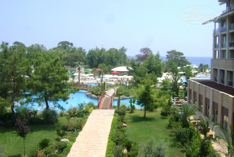 Территория: очень красивая архитектура отеля, шикарные внутренние помещения, красивые бассейны, потрясающая зелень и всё это на фоне гор. Живописное место! Очень красивые виллы. Большой аквапарк и лунапарк. Есть небольшой зоопарк: индюшки, голуби, куры, собачки со щенками, пони и козы. Большой мини-клуб.