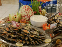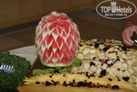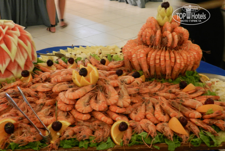Питание отличное, были конечно туристы, которым не нравился однообразный завтрак, скудное меню в обед, отсутствие супов)))Но основная часть русских отдыхающих в восторге от питания!!!Постоянно говядина, свинина,индейка,рыба(не так часто, но вкуснющая баранина, кролик),салаты овощные, на гарнир и макароны, и картофель, и рис, и овощи. питание на любой вкус)В четверг -рыбный день)Нам повезло мы попали на 2 четверга)))Притом второго четверга мы ждали с нетерпением)))Креветки,мидии,осьминоги,сёмга,рыба,(даже крабовые палочки, но они лежали практически нетронутые)))))).Единственный минус-креветки у них варятся без соли(((Около бассейна бар, так там днём шашлычки,рыба и мясо,овощи и гарниры) Голодным там точно не останешься)Фрукты весь день,киви,бананы,ананасы,апельсины, яблоки, груши, виноград, нектаринки, персики,черешня-Постоянно народ подходит, набирает с собой в номера или на пляж-никто слова не скажет.