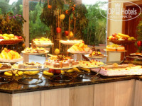 Питание хорошее, разнообразное. Завтрак классический европейский-йогурты,мюсли, сухофрукты, консервирован.фрукты, свежие(яблоки,апельсины,финики,персики), сыры, ветчина, картойфель, яйца в разных вариациях, оладья, овсянка, выпечка. Обед в ресторане на пляже. разнообразный супчик, 2-ые блюда, сладости,фрукты. Разные перекусы в течении дня(пицца, гамбургеры, хотдоги, овоши на гриле, вафли с мороженным, блинчики). На ужин самый большой выбор-2 меняющихся видов супов, разные гарниры, мясо, рыба, каждый день кальмары в разных вариациях, раз креветки, раз крабы. В общем, очень много всего. Почему постапила 4-ку-на мой вкус и вкус моего мужа, несмотря на огромное разнообразие, не могу сказать, что всё прямо вкусно ох и ах. Обычная еда. Но это сугубо мой личное мнение, может мы черезчур капризны) На мой вкус, самое вкусное у них это сладости, всегда были не только европейские, но и восточные, что меня очень порадовало.