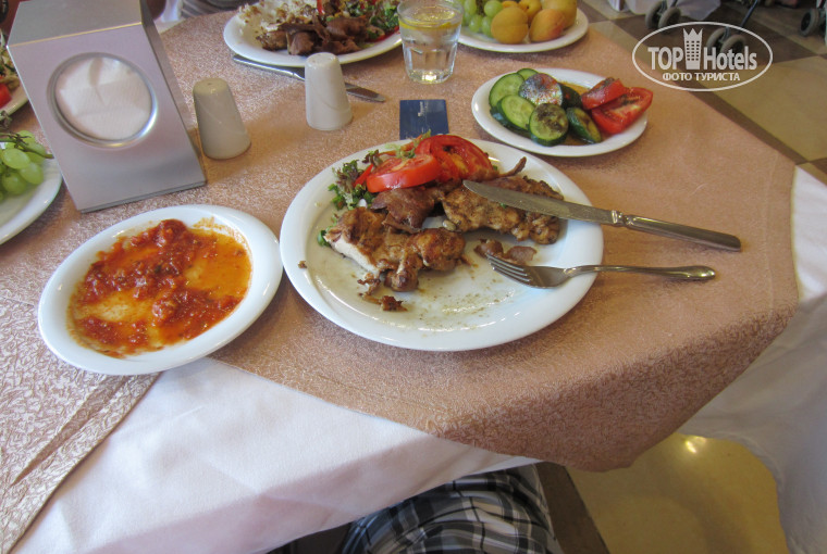 ПИТАНИЕ....Кормили на убой!Курица,Баранина, Говядина,Индейка в разных видах....я молчу про овощи и гарниры их тоже было завались.....Конечно, очереди были,но максимум постоять надо минут 10 и то,не всегда...Тут пишут, что мало фруктов....Были персики, абрикосы, черешня, виноград, арбузы, дыня, апельсины, яблоки....всегда всем хватало!АЛКОГОЛЬ разбавлен,пить просто не возможно,пиво более менее нормальное....Если есть возможность, берите с собой или в дютике закупайтесь(как мы и сделали) и тогда ваш отдых ничего не омрачит))))