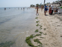 Мы ехали исключительно на море. Планировали в этот раз просто купаться. По этому (ну и от столовки, конечно) осталось столько негатива. Тина, много тины, сплошная тина. Мутная вода. Но это природное, ничего с этим не поделаешь. Вода очень, очень теплая, иногда горячая. А вот слева от отеля, метрах в 200, в море впадает речушка на которой стоит электростанция (совсем рядом с отелем) и плавает в ней всякая хрень, думаю поэтому, иногда на море сильный отвратный запах (у соседних 4х отелей, причем 4*, пляжи такие же, мы все прошли). Смотрите фото. Пляж у отеля маленький, каждое утро его от тины убирают. Но тина сразу появляется опять. Песочек хороший, белый. Лежаков много, зонтиков мало. Не уютно.