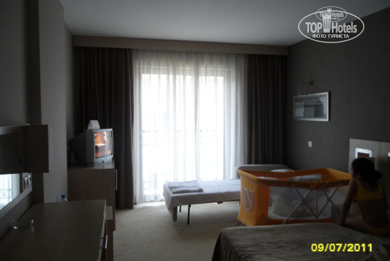 Здравствуйте!Мы отдыхали семьей с детьми 7лет и 1,5 года с 9 по 19 июля. ОТЕЛЬ очень хороший,расселили без проблем и доплат,я попросила только не на 4 этаже,дали на 3,номер небольшой аккуратный уютный,балкон маленький, для сушки вещей достаточно места,шкафы узкие,но у нас все поместилось,убирали хорошо. Расположение очень удачное, есть где прогуляться вечерком,недалеко остановка, экспресс- автобус до Антальи,мы ездили в торговый центр Мигрос)5 долларов с чел.,такси дорого.Территория отеля небольшая,ухоженная и на наш взгляд грамотно спланирована,очень удобно. МОРЕ и ПЛЯЖ. Море чистое,вода теплая,пару раз после обеда приносило немного мусора,вероятно с яхт.Пляж близко от отеля,относительно чистый,люди не очень стараются поддерживать чистоту сами,бросают окурки где попало.Свободные лежаки есть в любое время,отдыхающих с других отелей просят идти на свой пляж. Минус- ни разу не видели спасателей на вышке. ПИТАНИЕ разнообразное,все очень вкусно,популярная тема о красном мясе,оно было иногда,чаще на ужин.Главным для нас являлось питание детей,так как у старшей дочери слабый желудок и она привереда ,а младшая просто маленькая,склонна к пищевой аллергии,проблем со здоровьем не было,они ели с удовольствием,мы тоже. Единственный раз когда мы остались голодными был ужин в ресторане Аля-карт,прождали больше часа,принесли все холодным и сильно подгоревшим,есть не стали ,ушли на мини-диско,детей я покормила в основном ресторане пока ждали заказ,а мы решили что для нас это разгрузочный вечер) АНИМАЦИЯ хорошая.Мне понравились как работали сестры Надя и Катя,но особенно хочу отметить работу Софьи, наших детей она просто очаровала,старшая с удовольствием посещала мини клуб. СЕРВИС. Лично у нас претензий не было,но наблюдали разные сцены,в общем 90% работают очень хорошо,а остальные 10% приходятся на некоторых официантов и барменов. P.S. Отель соответствует своей цене,5 звезд эконом, рекомендуем для тихого семейного отдыха с детьми.