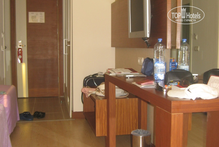 1)размещение, номер и сервис: приехали мы в отель в 12 или в 13 00. комнату нам дали сразу после заполнения анкеты на 3 этаже. Комната большая около 18-20 кв.м. недавно только после ремонта, окна выходят на проезжую часть. Собственно вид из окна то красивый, да только поток машин напрягал на протяжении всего отдыха. особенно по ночам когда движение по трассе наиболее оживленное. Из недостатков номера в ванне дверка душа не закрывалась и вода просачивалась в ванную на пол, на раковине и краны белые подтеки. Пару раз ломался унитаз пришлось на пальцах долго объясняться на рисепшене чтобы прислали сантехника (причем общения происходило без стандартной ругани). Сантехник пришел через день все починил, но потом унитаз опять сломался и его пришлось ждать еще день. Мы хотели поменять номер, но нам сказали нету. Я подходила несколько раз и в итоге на рисепшен мне сказали что можете записаться через два дня номера освободятся и вы посмотрите. в итоге через два дня предложенные три номера были просто ужасные, а взятка в размере 20долларов cif положения не улучшила (кстати деньги потом вернули) так что мы остались в своем.