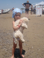 Отдыхали в Клаб Белла Сан (я, мама и дочка 3,5 года) с 14 по 28 июня 2011г. через оператора Тройка (дочка ТЕЗа). В Турции впервые, раньше отдыхали в Болгарии и Тайланде, но без ребенка. Сразу хочу сказать, что отдых не разочаровал лишь потому, что на 100% знали куда ехали. Отзывы читать и анализировать начали чуть ли ни за полгода до поездки. Отель выбрали потому, что там в прошлом году отдыхали друзья. На Сидэ выбор пал из-за ребенка (песчаный пляж и близость к аэропорту по сравнению с Аланией). Перелет описывать не буду, все очень бонально, встреча в аэропорту как везде, отправки ждали больше часа на 30 градусной жаре с маленькими детками. Доехали за час и то потому, что наш отель был 4 и последним в списке трансфер а. Мы были с друзьями (семья с ребенком 5 лет) и конечно при заселении нам сказали, что номера наши освободят только завтра (тур оплачивали по раннему бронированию в марте) и поселили нас в 2-х комнатный семейный номер с отдельными ванными комнатами, но одним входом. На одну ночь для нас это было не принципиально, тем более, что ходить выбирать номер после дня в дороге совсем не хотелось. За это получили обещанные фрукты с вином через день на все время отдыха и бесплатный сейф в номере. Переночевали, подошлина ресепшн после завтрака и стали ходить по предложенным номерам. Нас устроил только четвертый по счету вариант и то предложили его нам только потому, что мы начачали потихоньку скандалить и говорить, что номера с выходом на сцену для нас неприемлемы так как мы с детками. В итоге получили 2 прекрасных номера с французским балконом и огромной (по сравнению с другиминомерами) ванной комнатой на 2 этаже. Номер из-за отсутствия полноценного балкона был очень большой и светлый (окно в полстены) с хорошим ремонтом и набором мебели. Про душ пропускаю, много уже сказано. И вот номер наш: 2 кровати (одна полуторка и одна одинарная), шкаф для одежды очень просторный, столик с тумбочками и зеркалом, телевизор, минибар (холодильник), телек с 3-4 русскими каналами, столик чайный+2 кресла. Более чем...К слову сказать сделать это было без дотаций не просто, нужно преложить максимум терпения и иметь железобетонные нервы. Полотенца и пастельное белье менялись по мере необходимости за шоколад "Аленка". Денег после уборки не оставляли. убирались на 4, не пылесосили, хотя на полу было ковровое покрытие и наблюдался песок. Распаковались и на море. Море близко, по дорожке между отелями первой линии минут 3-5 максимум. Пляж грязный, и пусть не говорят что это не вина отеля! Водоросли и бытовой мусор можно убирать ежедневно при желании. Пляж ОЧЕНЬ маленький для такого числа постояльцев отеля, при том что отель в июне забит был уже на 150% места архи не хватало, не говорю уже о лежаках, которые занимать не удавалось даже в 6 утра, так как они были заняты уже с вечера. Но нас это не особо расстраивало, потому что печься на солнце как курицы-гриль это не для нас. Мы активно плавали с дочкой, играли на берегу в мяч, куличики строили, просто гуляли по берегу и т.д. А расположились на байдарке, одиноко стоявшей на берегу. Кормили не плохо, все очень однообразно, рыба была одного вида, но есть ее было невозможно из-за обилия мелких костей. Курица каждый день, фрукты: арбуз, дыня, апельсины, яблоки, грейпфруты, вроде абрикосы изредка. Были у них обалденные вкусняшки - овощи в кляре (жарят в виде шарико