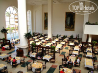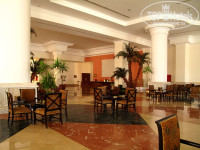 Сам отель построен буквой «Ш». Холл просторный, светлый. Не понравилось наличие искусственных пальм, к тому же ещё и пыльных. Ресторан один, но большой, мест всегда свободных много, неважно когда ты пришёл, утром или вечером. Грязную посуду убирали быстро. Кормили нормально, арбузы и дыни были каждый день. Очереди если и были, то не большие. И то, когда ждешь их приготовления, готовили на больших противнях много порций сразу. Обычно в других отелях яичницу делают на двух сковородочках, а тут штук 30-ть на противне. И так со всем остальным. Вечером у входа в ресторан разливали мохито и пунш. Пунш мне очень понравился, вкусный и сладкий. Везде стоит кофе-машина, можно приготовить: кофе, латте, кофе с молоком, экспрессо, капучино и что-то ещё, уже и не помню. Многие питались в баре на пляже. Мы всегда ходили в ресторан, там и выбор и прохладно. Супы были разные, название только одно – «русский суп». Фрикадельки они назвали – «мяч мясной», тушеные овощи – «овощи приготовленные». Читать было интересно. Старший всегда следил за порядком. Однажды заметила, как стоит возле стола и листья салата вынимает, потом подозвал работника, «рявкнул» на него показывая свой «урожай». Я так поняла, наверно плохо помыли. В другой раз фрикаделька на полу лежала, тоже как крикнет на работника, я сама чуть не метнулась поднимать её. Уж больно строгий у него окрик. Иными словами за порядком и качеством следят. После завтрака и обеда, поднимались на ресепшен, там wi-fai, интернет долго грузит (желающих много), а вот «аська» летает быстро. Мы общались только через неё. Два бара здесь же работают, только выпивка. Бар где можно перекусить 24 часа находиться возле ресторанов аля-карт. Там и мороженное всегда есть. Мороженное есть и на пляже, дают с 12 до 16-00.