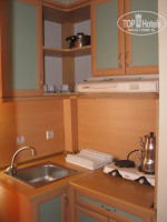 В нашем номере была миникухня с практически всей посудой, включая кастрюли, двухэтажный турецкий чайник, стаканы, тарелки, приборы, в т.ч. ножи, плитка и прочее и прочее... Для тех, кто не понимает, зачем нужны кухни с посудой, если в номер нельзя проносить еду, объясню. Они нужны для немецких и т.п. туристов, которые берут туры без питания и готовят в номерах. Им можно. Нам - нет...(