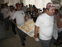 Питание отличное, мяса, рыбы полно, всем хватает что в начале трапез, что в конце, не нужно бежать занимать места, тарелки, народу много, но молниеносная и всегда с улыбкой работа официантов заставляла восхищаться всем этим процессом и благодарить их за такое внимание и усердие. Ну а если ты в самом начале в ресторане отблагодаришь кого-то из старших официантов, то вниманием будешь окружен весь период отдыха. Не надо жадничать, они этого заслуживают. Про все эти салаты, йогурты, фрукты, сладости, барбекю и лепёшки с пиццами и говорить не буду, всё очень вкусно. Арбузов наелись надолго, почти всегда сладкие, апельсины – класс… не то, что у нас, черешня… В барах на пляже, лобби бармены просто летают, у них всё в руках «горит», такие виртуозы с бутылками выделывают, супер..! Молодцы!
