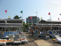 К середине нашего отдыха отель заполнился до отказа и мы это почувствовали только на пляже и у бассейнов, где с самого утра иностранцы занимали козырные места, поэтому мне, как человеку, не любящему долго спать, приходилось тоже раненько «бронировать» лежаки. Но места хватало всем, тесно, но всем, даже, которые приходили в 10 часов. Бич Бой им помогал найти и поставить лежаки на свободные места на пляже, а после этого непременно незаметно посмотреть на руки пришедших, нет ли там заветной «у.е.». Море тёплое, но не всегда у берега чистое, откуда-то появлялись водоросли, а потом незаметно исчезали. Вход в море плавный, мелкая галька, метров пять от берега и уже глубоко, можно плавать и наслаждаться, больших волн нет. На пляже аниматоры с 10-ти утра развлекают различными гимнастиками, бочами, волейболом, дартс, в бассейне – аэробика, конкурсы, водное поло, но всё это ненавязчиво, кто хочет, тот и сам пойдёт.