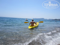 На пляже есть 2 душа. И разные виды развлечения на воде. Мы с первого дня плавали на каное, тем более бесплатно! Отплывешь подальше и смотришь какие виды открываются на побережье!