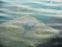 Рыбок тут нету, видели ската в камнях на краю лагуны и парочку мелких рыбешек. Хотя сразу за лагуной (за территорией отеля)есть небольшой порт или причал. Оттуда каждый день отправлялась масса лодок с прозрачным дном и яхт на экскурсии. Отплывали они совсем не далеко от отеля.