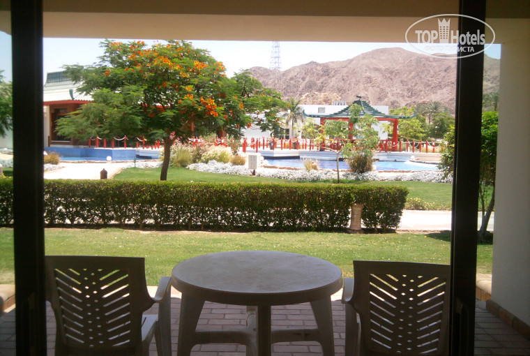 Номер был на о этаже, с видом на Китайский ресторан и водоем перед ним. Сначала расстроилась, что не на 2, хотя потом оказалось, что это даже удобно - можно с террасы выходить на улицу и гулять;) Поэтому номер менять не стала.