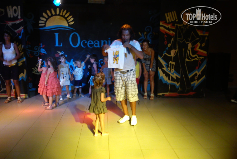 после ужина - мини-диско. Проводит Маша. детки ее обожают - настоящая белоснежка в окружении гномиков. Правда мою красу однотипные песенки и танцы привлекали только дня 4. Далее своим вечерним досугом она занималась самостоятельно бегая по детской площадке и периодически танцуя. После мини-диско Оззи представляет деток, которые танцевали и если кто-то из них хочет рассказать стихотворение или спеть песенку - сцена в его распоряжении, зрители с удовольствием похлопают.
