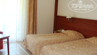 У нас было два стандарта + доп. кровать (бесплатно). Вид в сад. Сад весь утопает в зелени. Уборка номера "почти" каждый день (пару раз горничные приходили убираться, когда мы были в номере. Но мы оговорили время на ресепшене, когда им надо приходить (чтобы нас не было)). Ремонт свежий. Санузел не течёт и не покрыт плесенью. Напор воды хороший (и холодной и горячей). Минибар в номере бесплатный и пополняется каждый день (безалкогольные напитки (кола, фанта, спрайт, вода)). Сейф тоже бесплатный. В номере ловит wi-fi (бесплатно), (надо, чтобы подключиться ввести номер паспорта и своего номера (это нужно уточнить на ресепшене)). Телевизор с разными каналами: музыка, 1-й, россия и др.) Есть балкон.