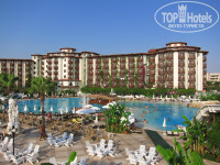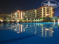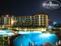На территории один огромный бассейн, состоящий из двух частей, разделенных красивым мостиком, один средний бассейн, 2 релакс бассейна, 2 джакузи. Главный ресторан (Marine), 2-й ресторан в нутри главного здания (Star), 3-й с другой стороны бассейна (Meditrenian), 4-й через речку рядом с пляжем (Riverside), также много баров.