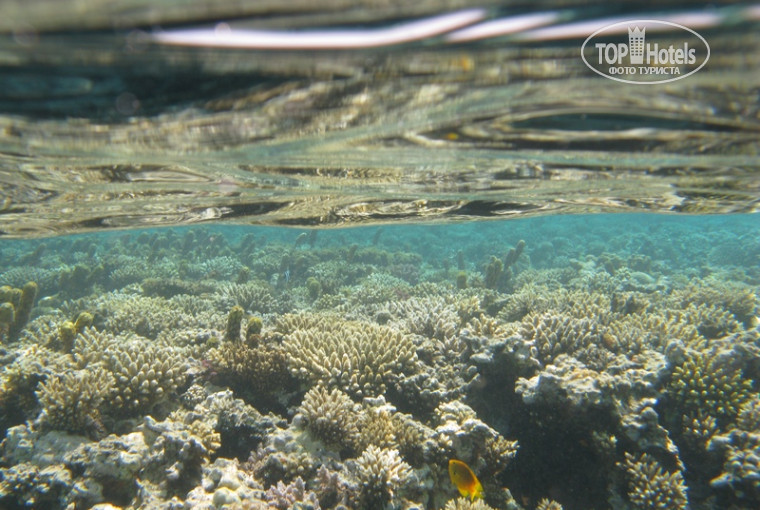 Вот что в отеле по-настоящему здорово - так это пляж. Пляж широкий, очень чистый, без камней. Мелководье тянется метров на сто, для детей место просто идеальное. Для тех, кто не очень хорошо плавает или просто любит поболтаться на волнах - тоже. Кораллы есть - около пирса и еще у буйков. Ничего примечательного, если сравнивать с Шармом, но все же есть куда сплавать с маской. Мы ходили гулять по береговой линии в 3 соседних отеля и пришли к выводу, что наш пляж лучший. Там везде полно мелких камней на берегу и в воде, почти везде - каменное дно, все купаются в спецобуви. На нашем пляже она совершенно не нужна.