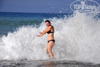Территория отеля ухоженная, чистая. Персонал приветливый и общительный. Вот с пляжем конечно дела обстоят не очень хорошо. сам пляж не песчанный, как правило пишут, а мелкая галька. И самое неудобное для маленьких детей, это постоянные волны на море. Даже если само море тихое, то на пляже всё равно будут волны. Поэтому мы с ребенком практически всегда находились возле бассейна.