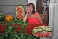 Номера убирали каждый день, полотенца менялись через день. В этом плане сервис в отеле налажен отлично. Про питание в отеле написано очень много, и разного. Поэтому мы перед поездкой приняли для себя решение что будем питаться овощами. Но с первого дня поняли, что питание у них на любой вкус. Только не надо долго спать. если приходишь как положено на завтрак, обед, полдник и ужин - то будешь питаться и мясом, и овощами. Правда были моменты что попадалась пища достаточно перченная, но это уж как попадется. Поэтому про питание скажу честно я доволен, питался там и мясо баранины, и мясо курицы и тушёные и свежие овощи. Вот из Фруктов там конечно были только арбузы, дыни, апельсины и сливы - ассортимент скудненький, но ничего главное всего хватало.